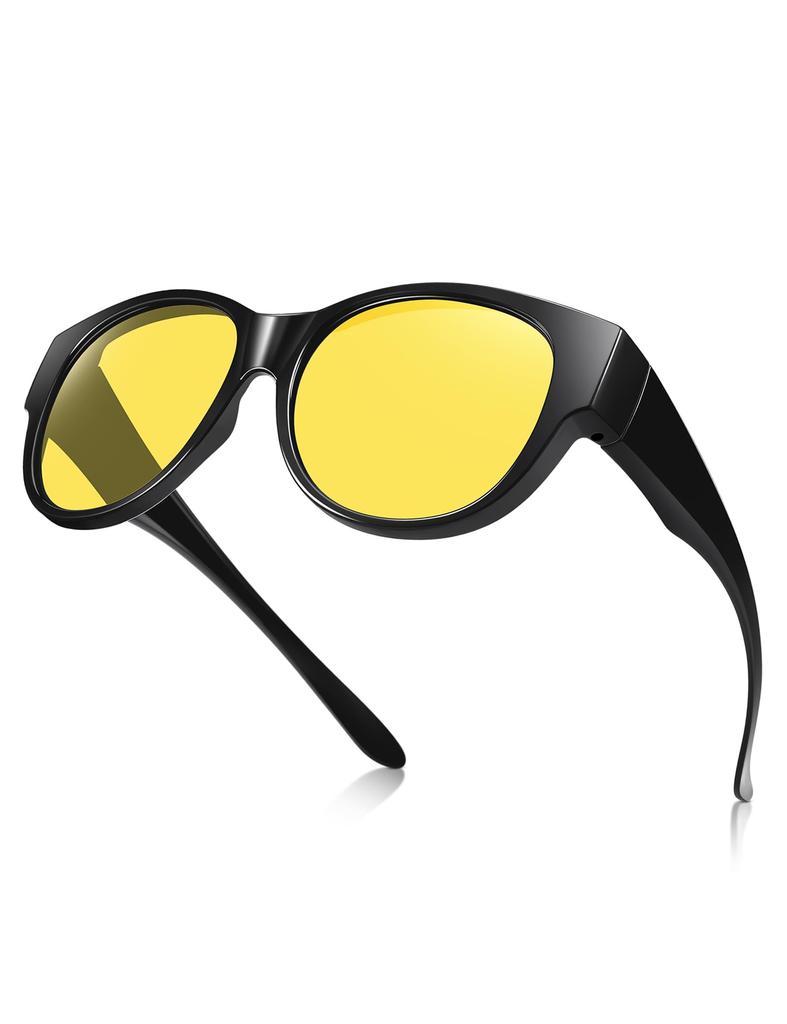 Br'Guras Night Vision Glasses with Yellow Polarized Lenses, Lightweight TR90 Material, Compatible with Glasses, Unisex (Black)