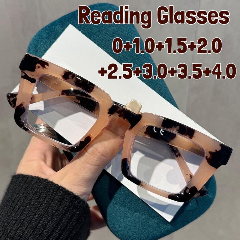 Retro Classic Square Frame Reading Glasses Women Men Vintage Oversize Anti Blue Light Presbyopia Eyeglasses 7colors Eyewear+4.0