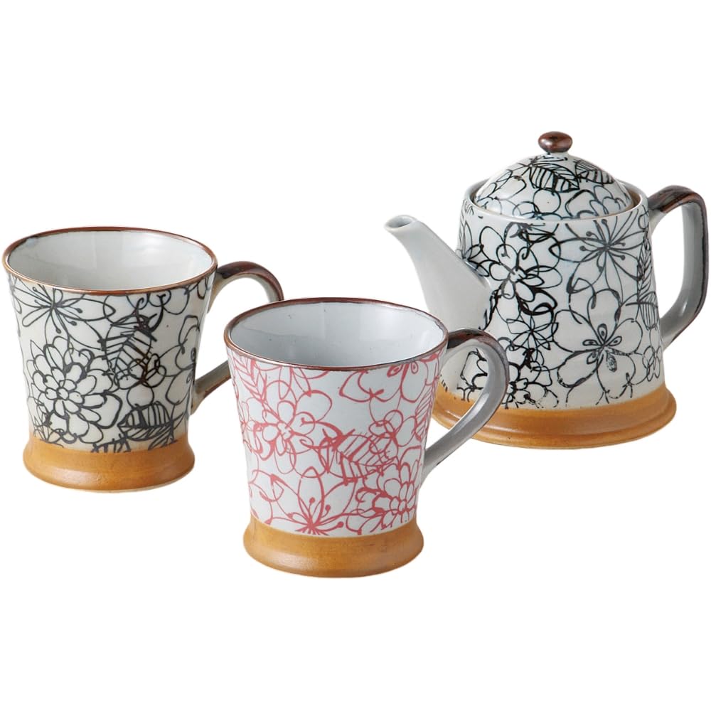 Ale-net Teapot, Tea Set, Diameter 10.9cm X Height 12.6cm, 460cc, Flower Garden Set, with Tea Strainer, Ceramic, Mino Ware