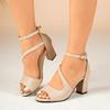 Women Open Toe Low Chunky Short Heels Strap Block Heel Sandals Party Dress Wedding Shoes