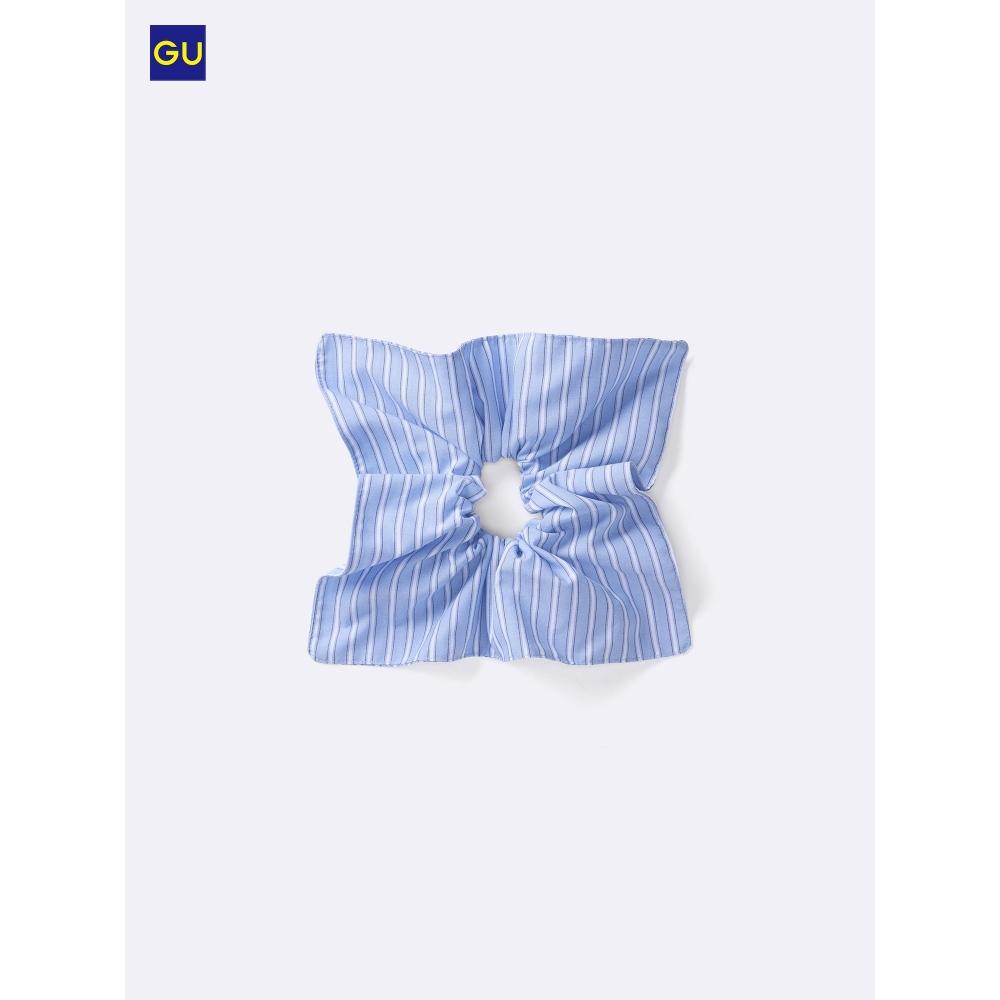 The Uniqlo GU Square Stripe Scrunchie is a hair accessory featuring a standout multi-stripe pattern. It is designed in a square shape and can be easily worn by tying it twice, creating a natural crinkle. It is also versatile enough to be worn as a bracelet when wrapped around the wrist.