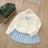 Autumn Kids Sweater Set Cute Flower Bow Girls Knitted Cardigan +Short Skirt Children Outfit 2PCS