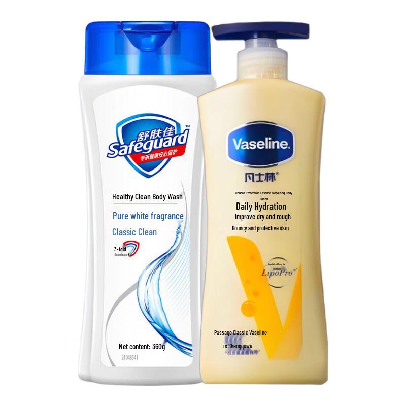 Safeguard Pure White Shower Gel & Vaseline Body Lotion Duo