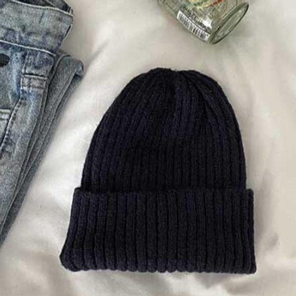 Women's Winter Daily Thick Knit Black Beanie Hat