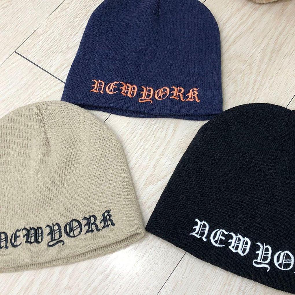 Women's Winter Daily Chrome Lettering New York Embroidered Beanie Hat