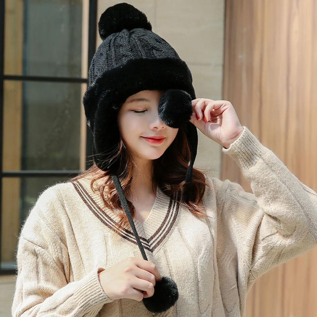 Winter Winter Earflap Fur Hat Black Pom Pom Hat