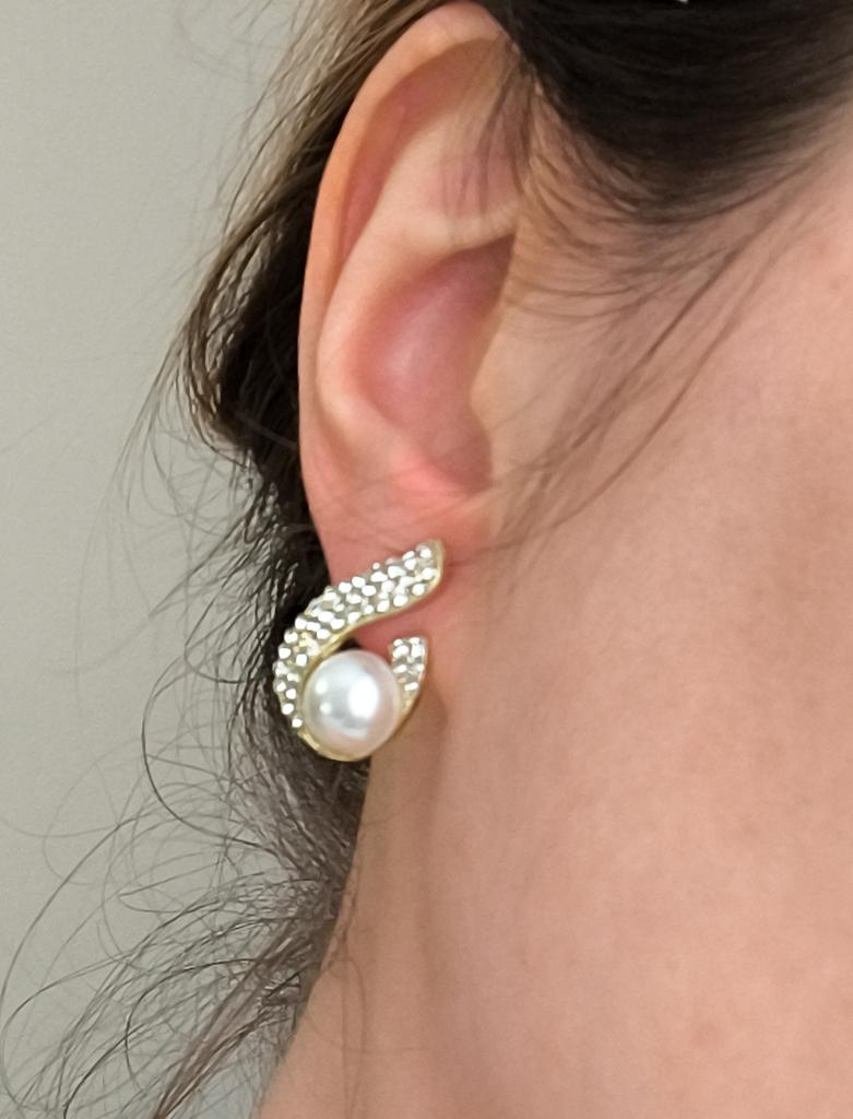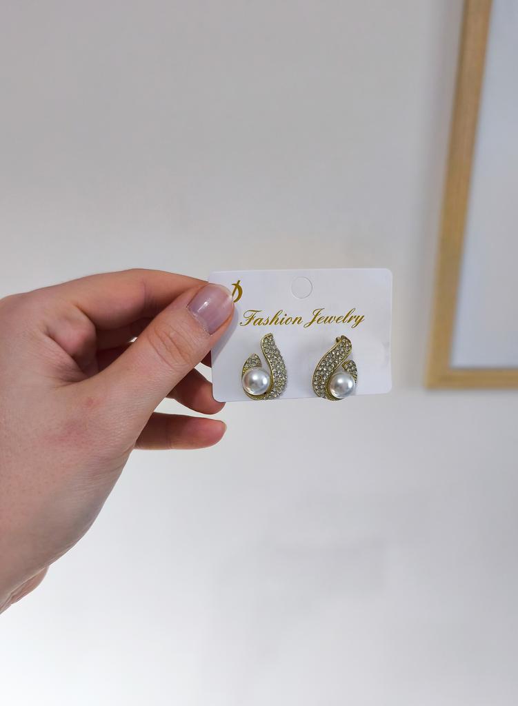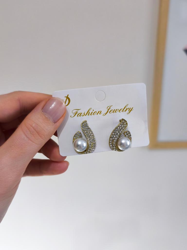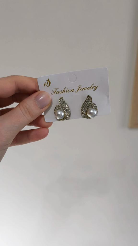 EARRINGS Stud earrings with a framed pearl and crystals. They arrived in Italy with tracked shipping in 16 days. Super fast shipping. Well wrapped in a sheet of bubble wrap they arrived intact. Packaging: They come in a plastic bag with a cardboard support. Excellent quality-price ratio. The metal color is gold in zinc alloy. Back closure: in silicone, very secure No glue stains and no defects. The pearls and crystals are well set. The purchase is recommended👌👌👌👌👌