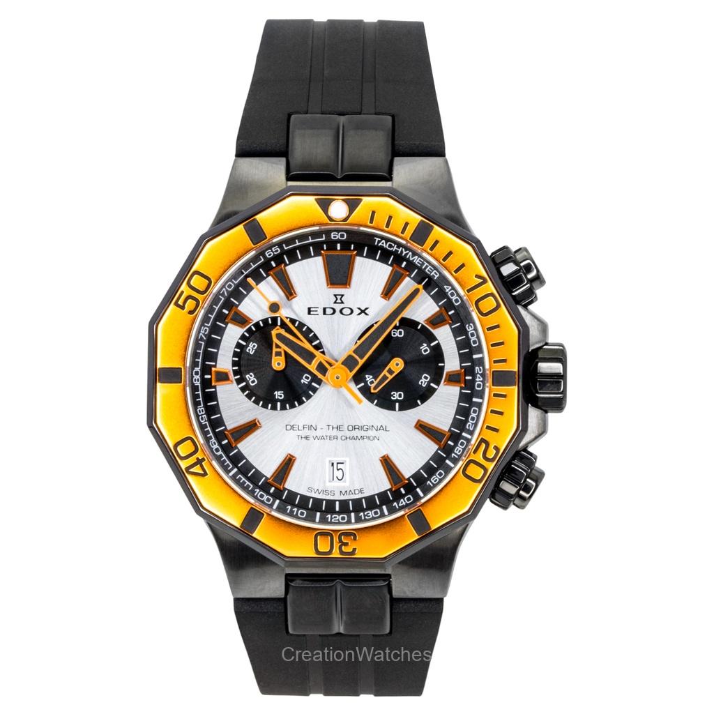 Edox Delfin The Original Chronograph Rubber Strap Silver Dial Quartz Diver's 10112-37GNOCA-ANO 200M Men's Watch