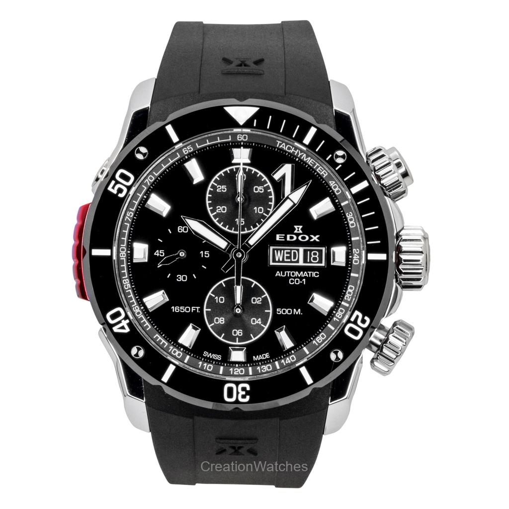Edox CO-1 Chronograph Rubber Strap Black Dial Automatic Diver's 01128-3NRCA-NN 500M Men's Watch