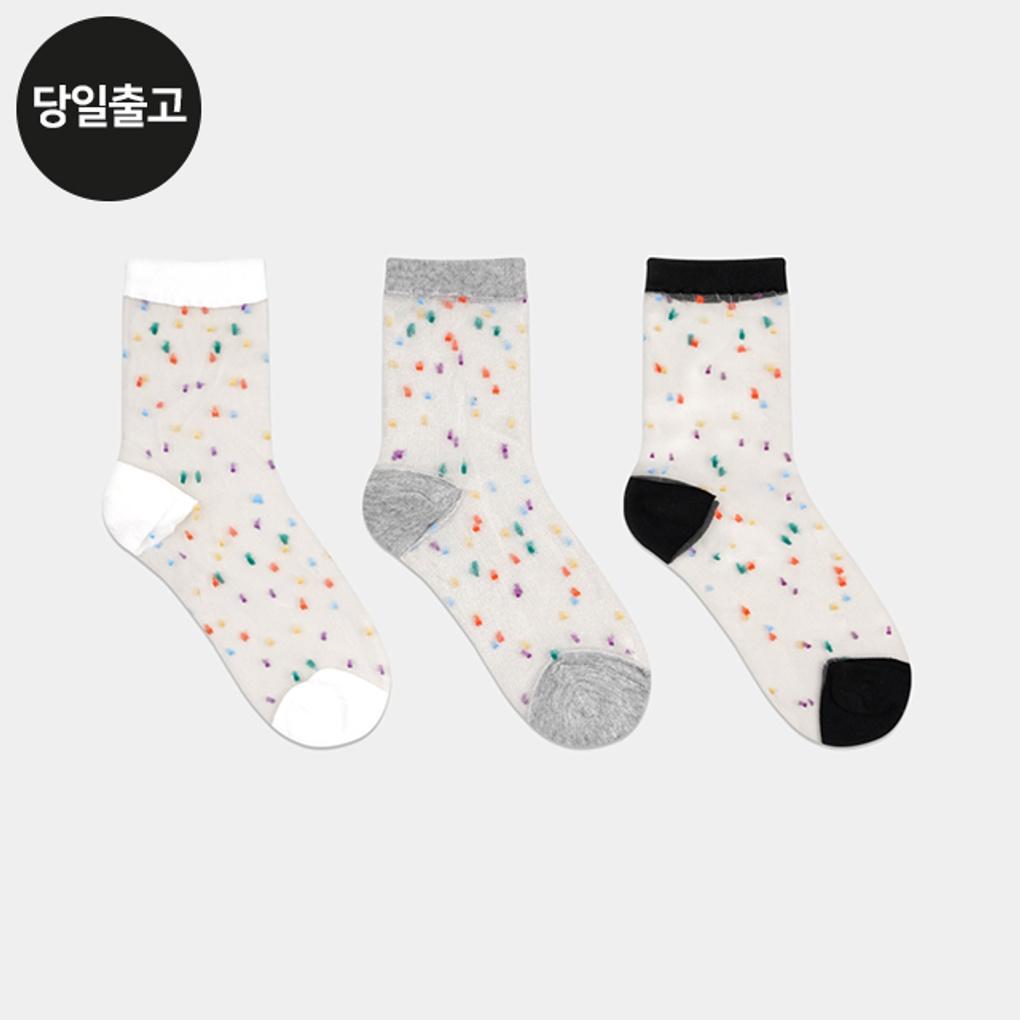 PG Women's/Student Color Dot See-Through Mid-Calf Socks (3 Pairs) Set Daily Student Mesh
