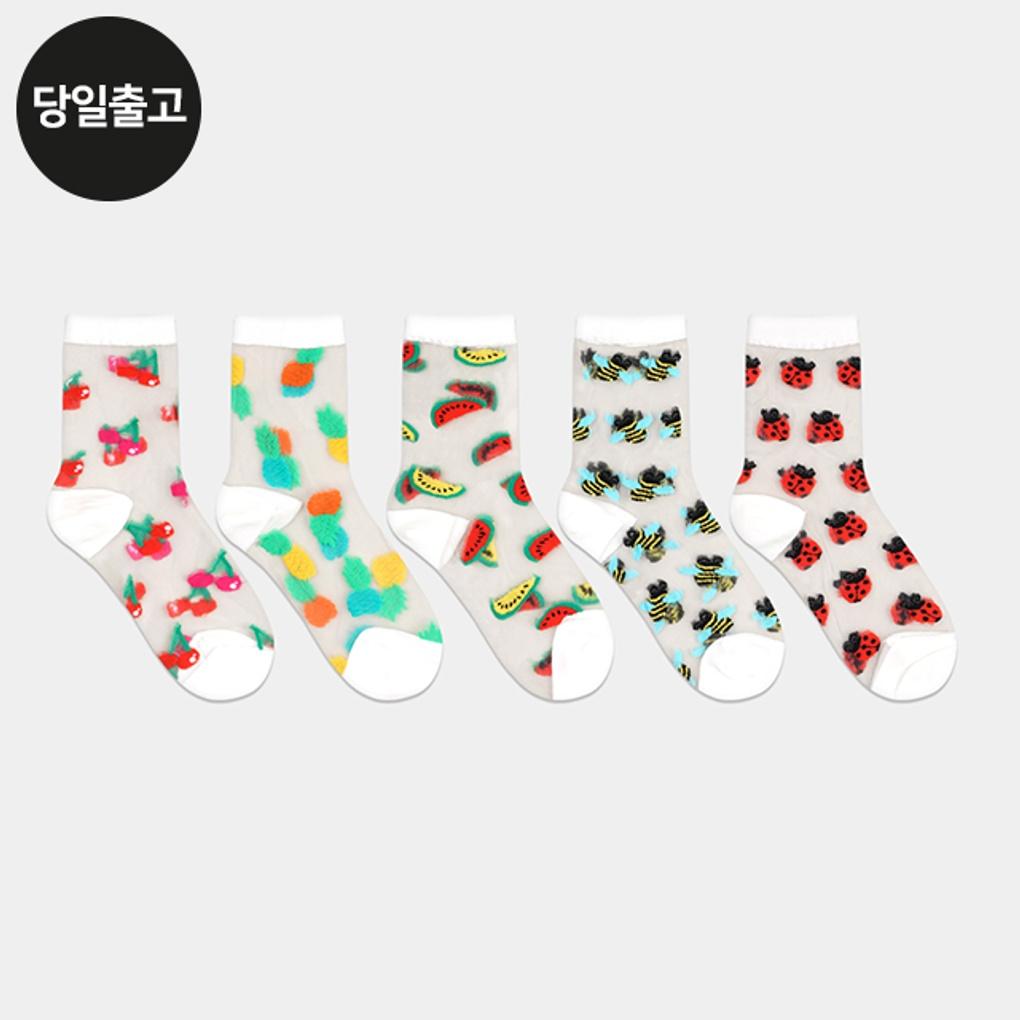 PG Women's/Student Fruit Insect See-Through Mid-Calf Socks (3 Pairs) Set Daily Student Mesh