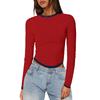 Women's Long-Sleeve Slim-Fit Color Block Crop Base Layer Top