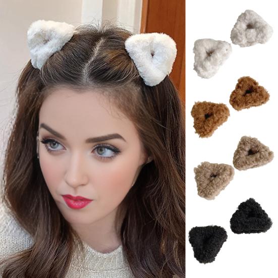 1 Pair Plush Cat Ear Hair Clips Non-Slip Triangle Side Hair Bangs Claw Clamp Decoration Hairpins Winter Women Girls Hair Accessories