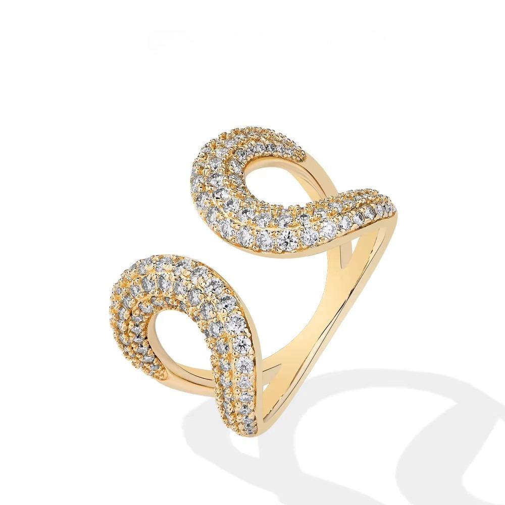 925 Plated / Gold Plated Open Ring - Adjustable Cuff Ring - Pave CZ Sparkling Ring - Gold & Color Options
