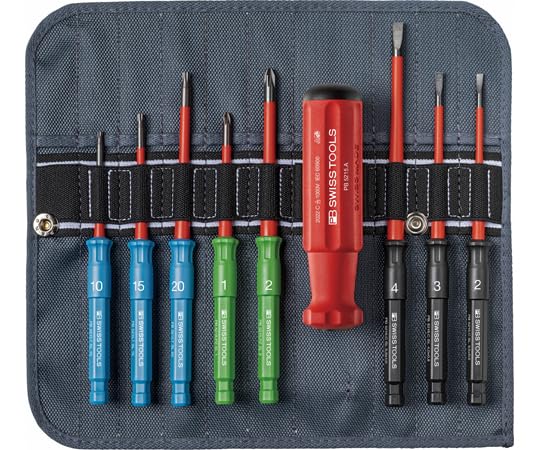 PB SWISS TOOLS 5215 Insulated Screwdriver Blade Series 9-Piece Set (Slotted, Posi-Plus, and Hexalobe) with Roll Case, 5218.SU