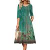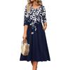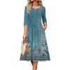 3/4 Sleeve Women's Dress Casual Flowy A-Line Midi Tshirt Dresses With Pockets Crewneck Vocation Boho Beach Sundress