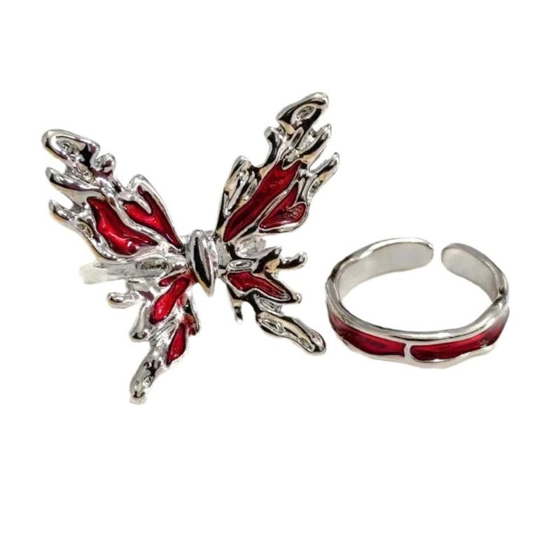 2Pcs Metal Butterfly Rings Adjustable Finger Rings Fashion Open Rings Jewelry Knuckles Rings for Women Girls