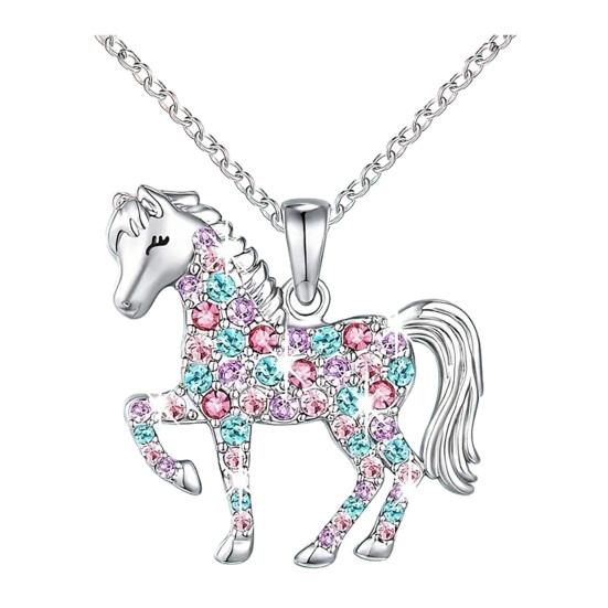 Yousheng Rhinestone Horse Pendant Necklace Colorful Faux Gems Horse Necklace Cute Sparkling Horse Charm Necklace Gift for Women Girls Cowgirl