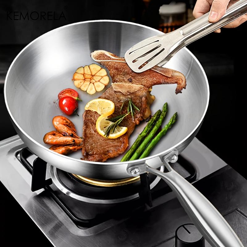 KEMORELA 316 Stainless Steel Frying Pan, Mirror Polished Design,Three-Layer Stainless Steel Multiple Sizes for Induction Cookers