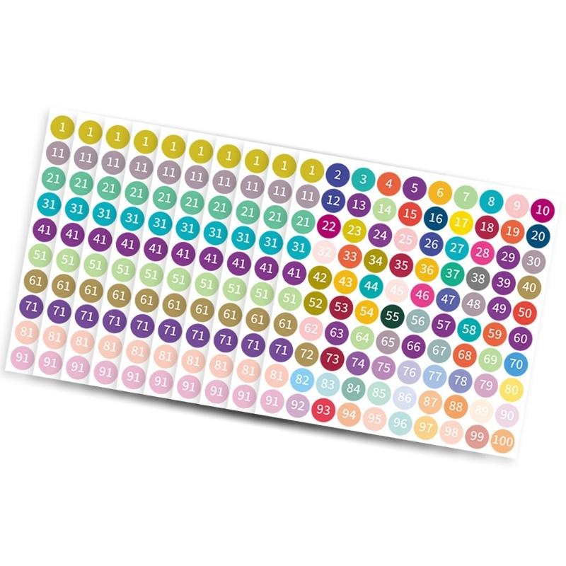 10 Sheets Consecutive Number Sticker 1-100 Adhesive Colorful Dot Numbered Labels for Classroom Office Home Organization