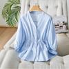 V-neck Shirt Women's Summer New Bubble Sleeve Loose Cotton Shirt