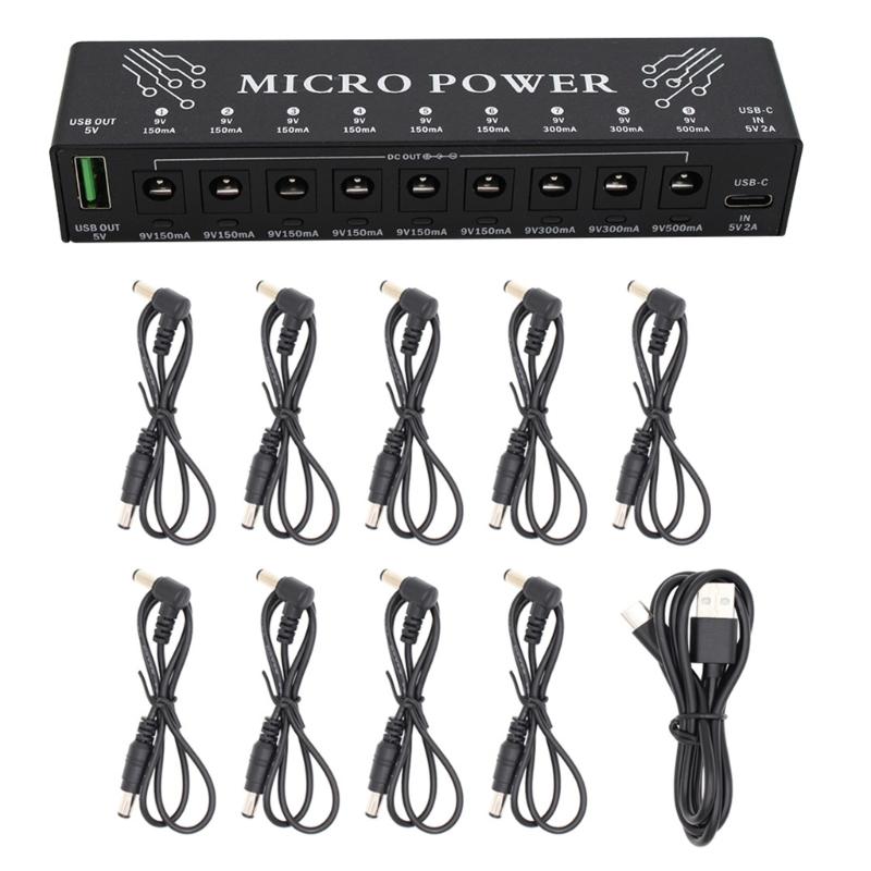 9 Output Adjustable Voltages Multiple Effect Pedal Power Supply Compact Light Weight for Guitar Studio Equipment