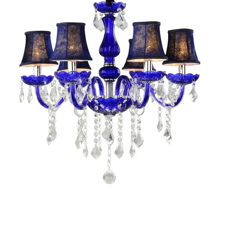 Luxury Blue Crystal Ceiling Chandelier for Living Room Bedroom Decor Hanging Lamps Hotel Restaurant Cafe Lobby Pendant Light