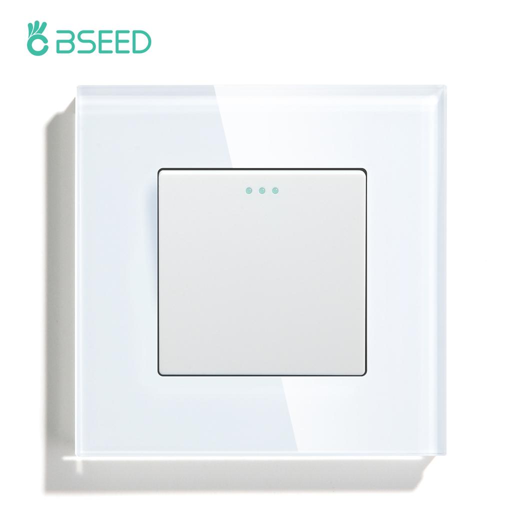Bseed 1 Gang 1 Way 2 Way 3 Way Push Button Switch EU Standard Home Switch Black White Golden With Crystal Glass Panel