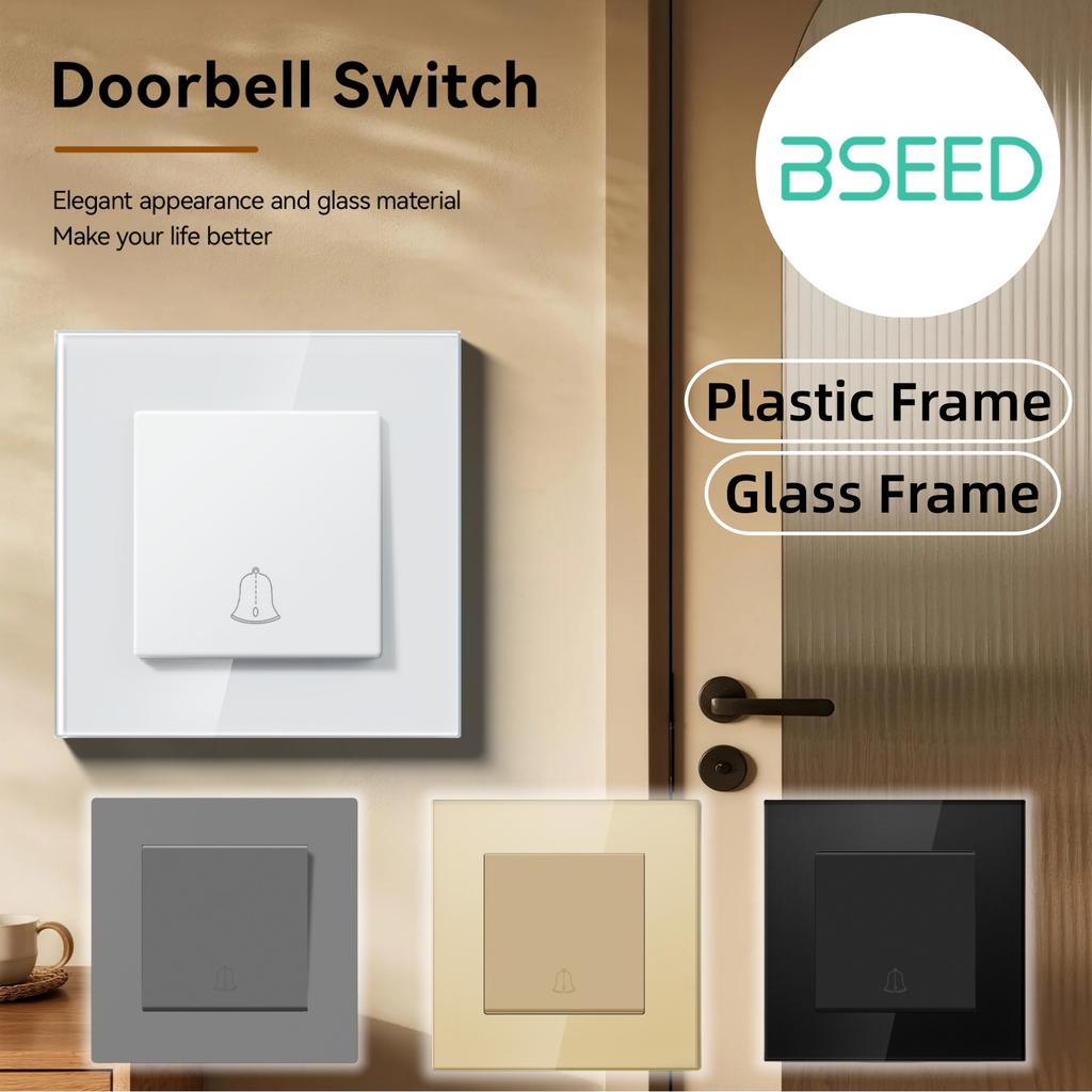 BSEED Mechanical Doorbell Switch Push Button Wall Switch Glass/Plastic Frame EU Standard White Black Gary Gold Reset Switch