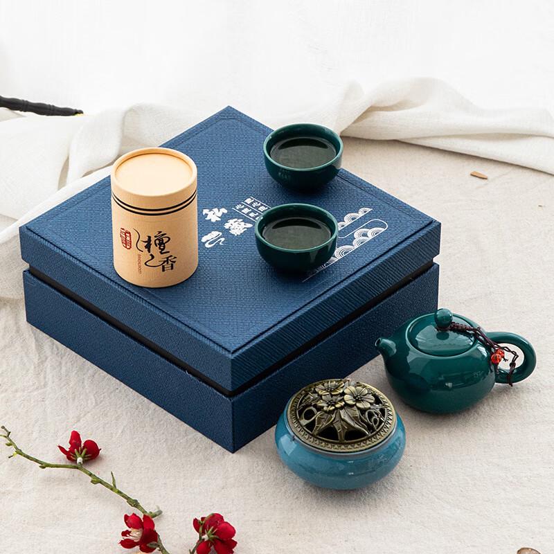 Celadon Dark Green Ceramic Tea Set Gift with Incense Burner
