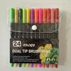 Water-based Double-ended Watercolor Pen Set with Colored Fine Liner and Soft Tip