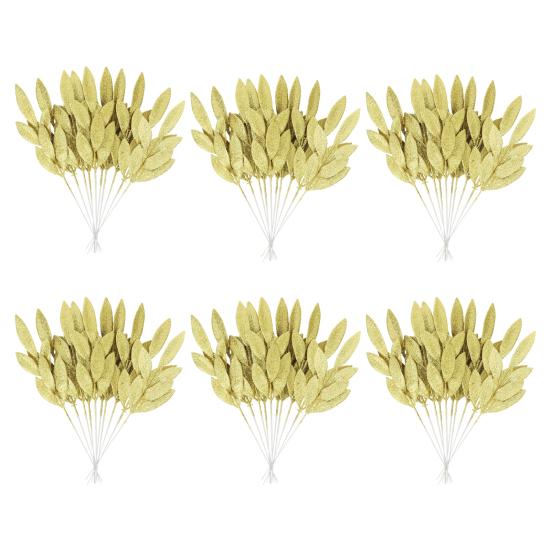 60Pcs Artificial Golden Leaves Fake Plants, Christmas Glitter Leaf Spray Picks