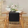 Tassel Table Runner, Linen Blend Rustic Farmhouse Style Kitchen Table Decoration Holiday Wedding Party Dinning Decor