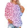 Women's Fashionable Round Neck Shoulder Long Sleeved Valentine's Day Printed Casual Pullover Top