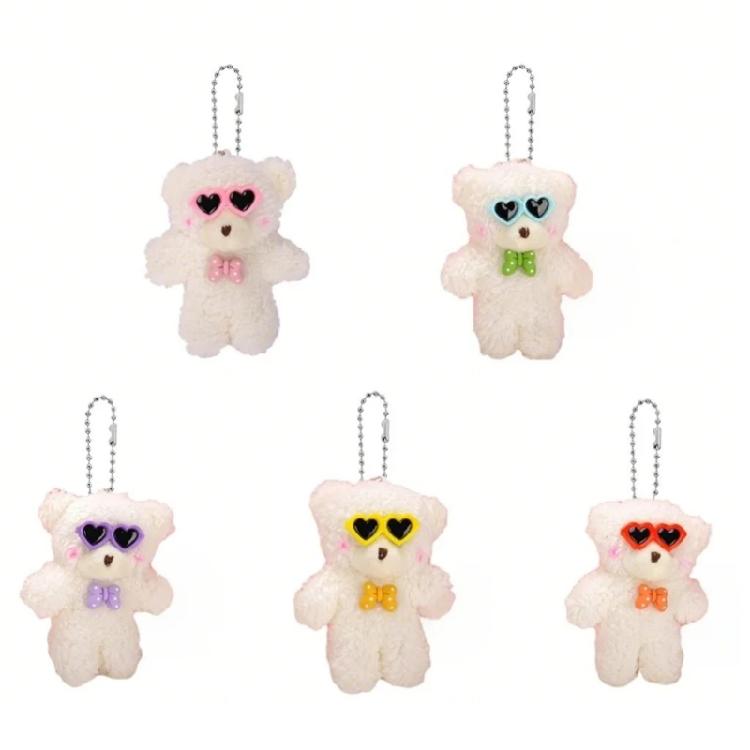 Adorable Furry Keyring Glasses Blush Bear Keychain Animal Shaped Backpack Charm