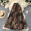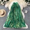 Spring Summer Women Elegant Print Elastic Waist Long Maxi Holiday Beach Pleated Skirt Only Have One Size