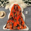 Spring Summer Women Elegant Vintage Print Elastic Waist Long Maxi Pleated Skirt Only Have One Size