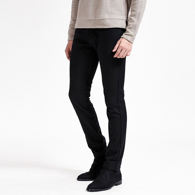 Menseye Men's Casual Pants Autumn and Winter Fleece-Lined Mid-Waist Black Men's Pants Youth Business Work Pants
