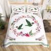 Hummingbird Print Duvet Set Three-Piece Bird Flower Bedding Set Quilt Cover Full Size