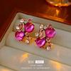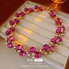 Vintage Rhinestone Necklace with Distressed Metal Leaves and Flowers - Retro Style