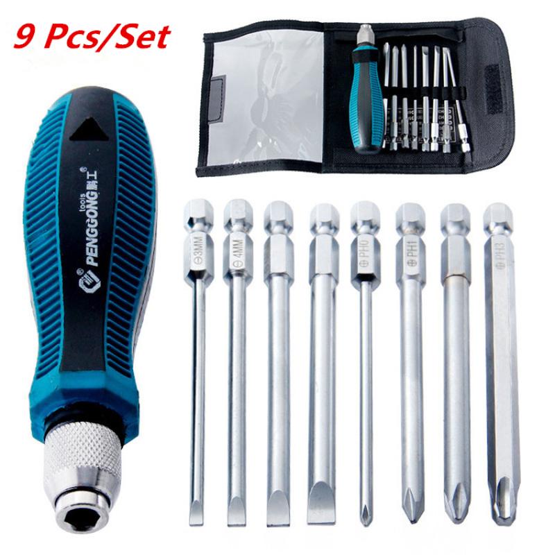 Hot! 9Pcs/Set Precision Screwdriver Set for 1/4in/6.35mm Phillips/Slotted Bits with Weak Magnetic