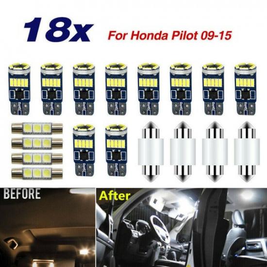 18x White LED Interior Light Bulb Map Reading Dome Lamp For 2009-15 Honda Pilot