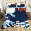 Japanese Style Bedding Set Twin Size Japanese Wave Comforter Cover Set Cherry Blossoms Ocean Wave Sunset Duvet Cover