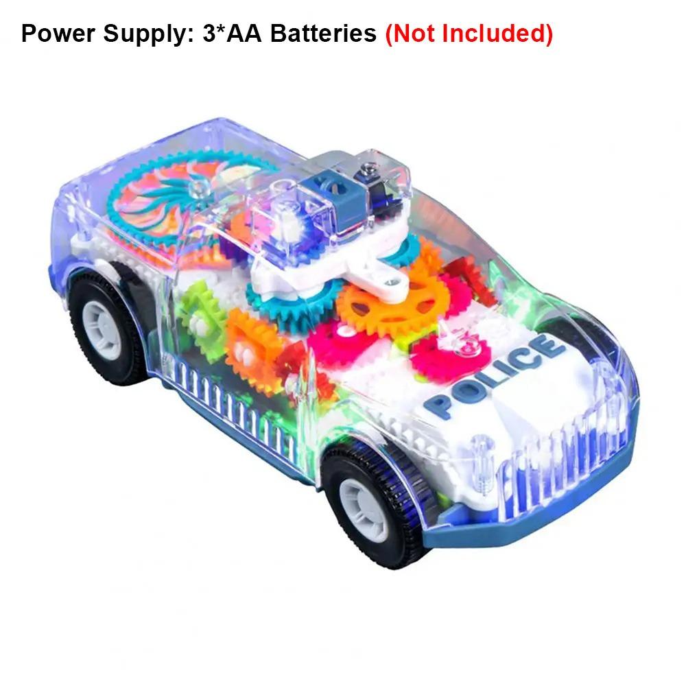 - Introducing the toy car with built-in LED lights for soft night play. Watch as the gears spin and vibrant lights mesmerize. This car moves in all directions, effortlessly avoiding obstacles with its auto-direction change feature. Kids will love chasing this mini car, with its transparent gear structure, colorful lights, and cool design.