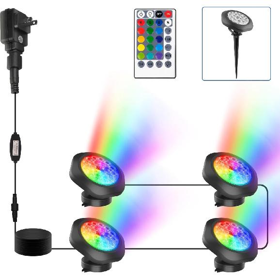 RGBW Pond Lights with Timer, 18 LED Super Bright Underwater Submersible Fountain Lights Color Changing Spotlights, Remote Control IP68 Waterproof for