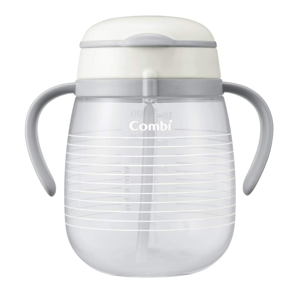 Combi Rakumug Leakproof 340ml Straw, Border, White,