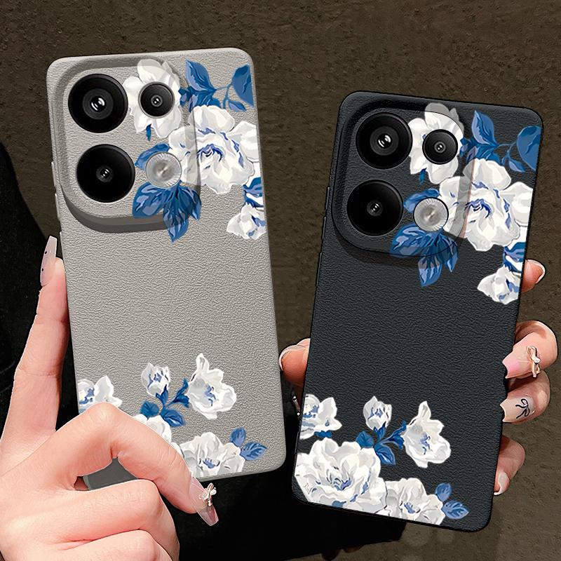White Gardenia Floral Pattern Case For Xiaomi 14T 13T 11T Pro Funda Redmi Note 14 13 12 11 Pro 5G 4G Leather Texture Silicone Cover