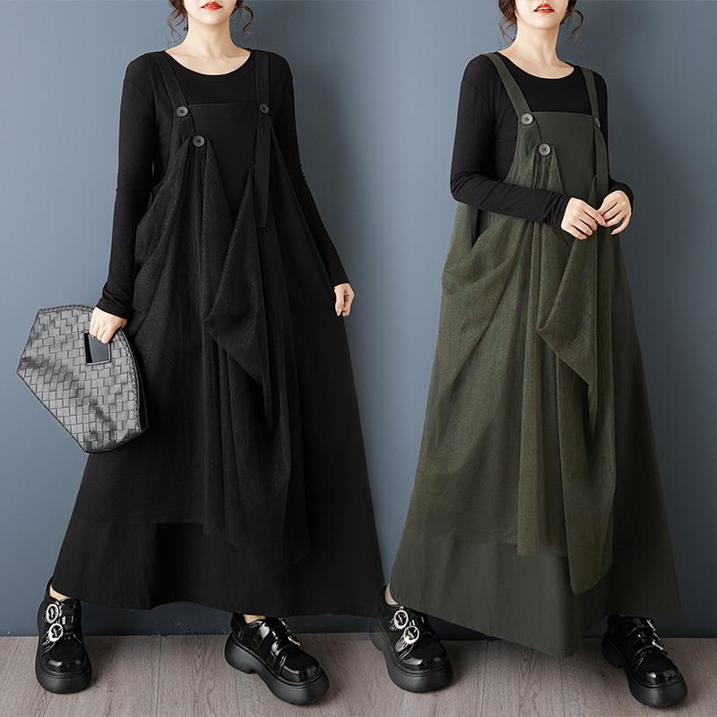 DIMANAF 2026 Spring Summer Women Plus Size Dress Maxi Long Dress Sleeveless Mesh Loose Casual Dresses