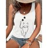 Kawaii Cat Design Printed Vest Pattern Women's Sleeveless Round Neck Top