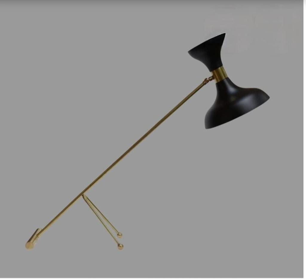 Handcrafted Customized vintage Stilnovo-style desk lamp, inspired by classic Italian design. Featuring a sleek black double-head shade, brass accents & an adjustable frame, this handmade table lamp is both functional and artistic.